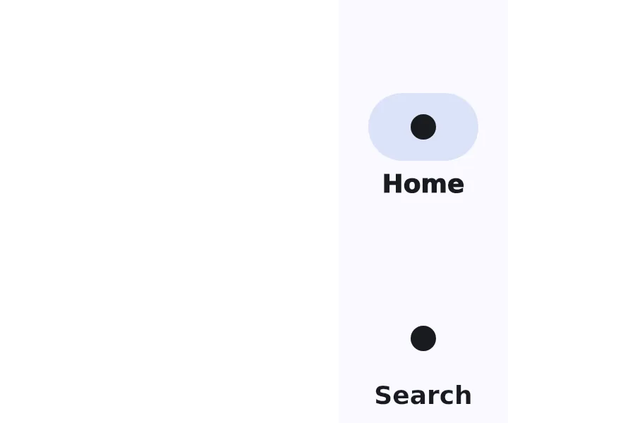 import { NavigationRail } from "material.slint";export component Example inherits Window { width: 400px; height: 300px; background: transparent; NavigationRail { width: 80px; height: parent.height; items: [ { icon: @image-url("icons/home.svg"), text: "Home" }, { icon: @image-url("icons/search.svg"), text: "Search" } ]; }}